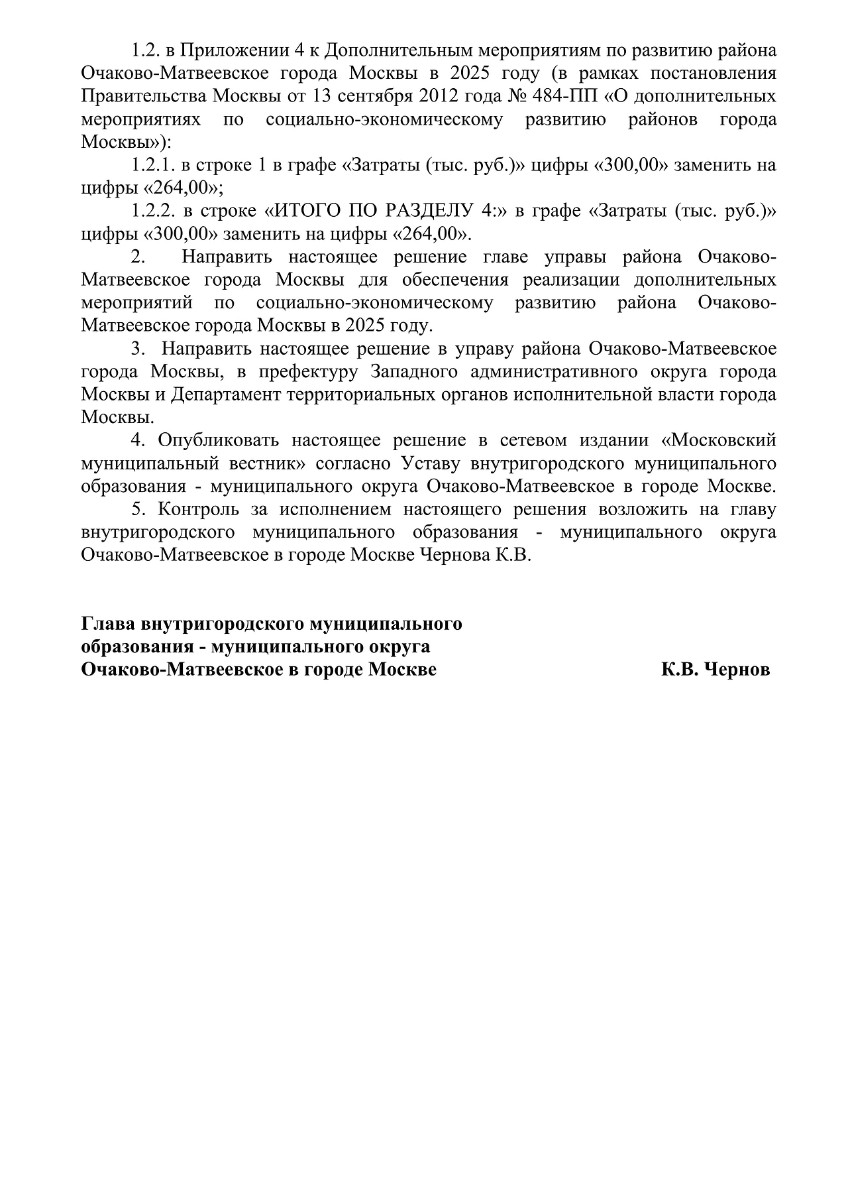 внутригородского муниципального образования – муниципального округа Очаково-Матвеевское в г. Москве