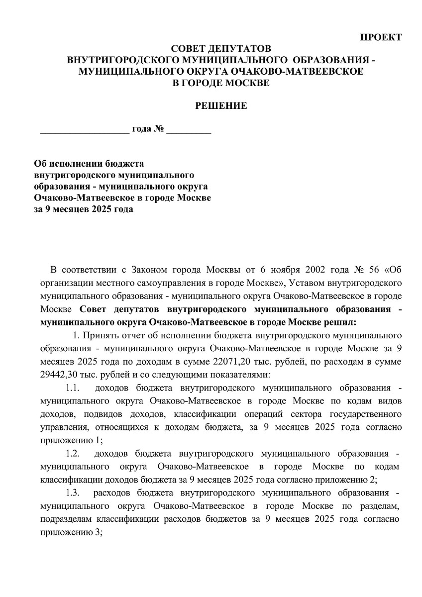 Проект решения СД от 08.10.2025 (Об исполнение бюджета за 9 месяцев 2025)