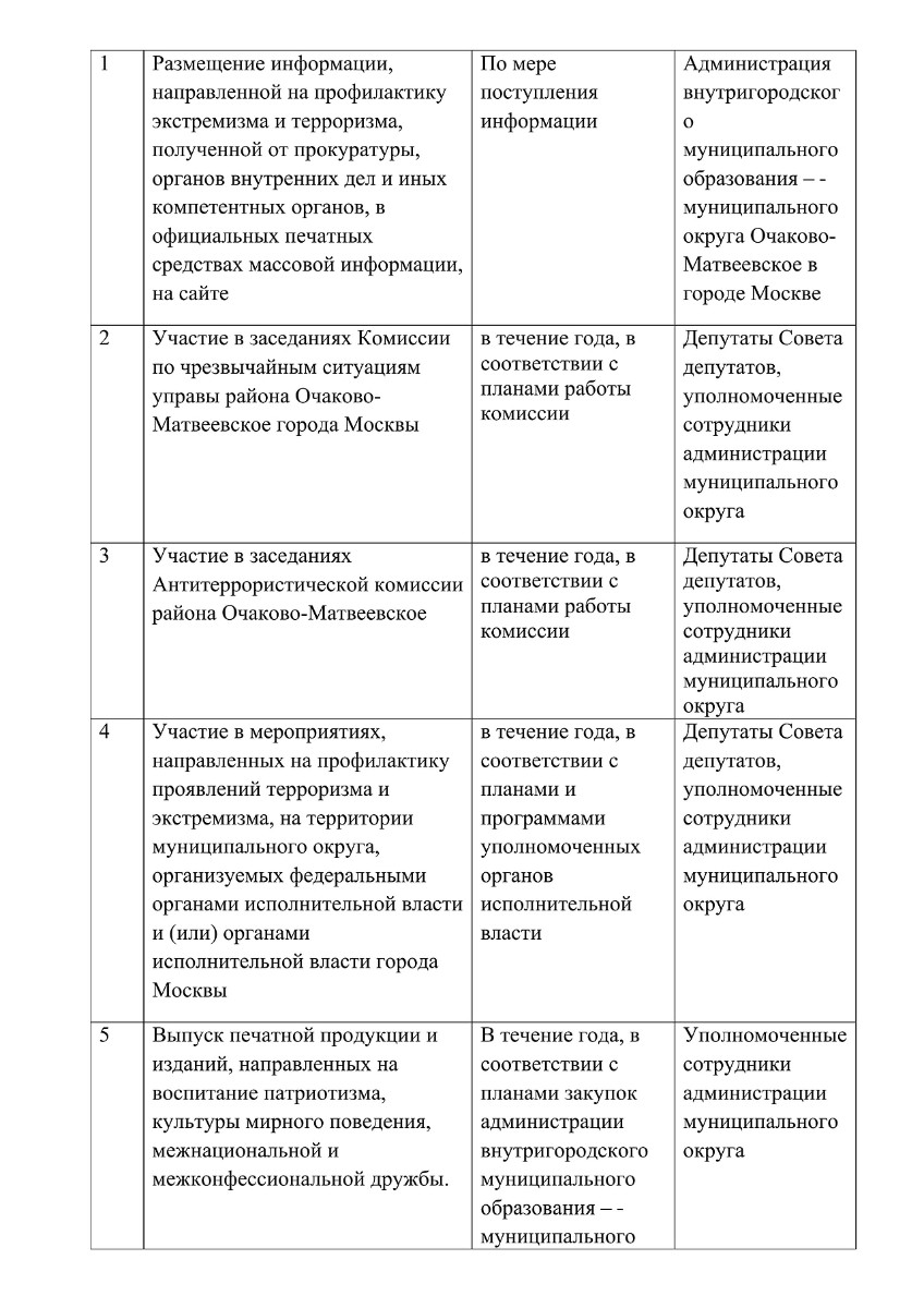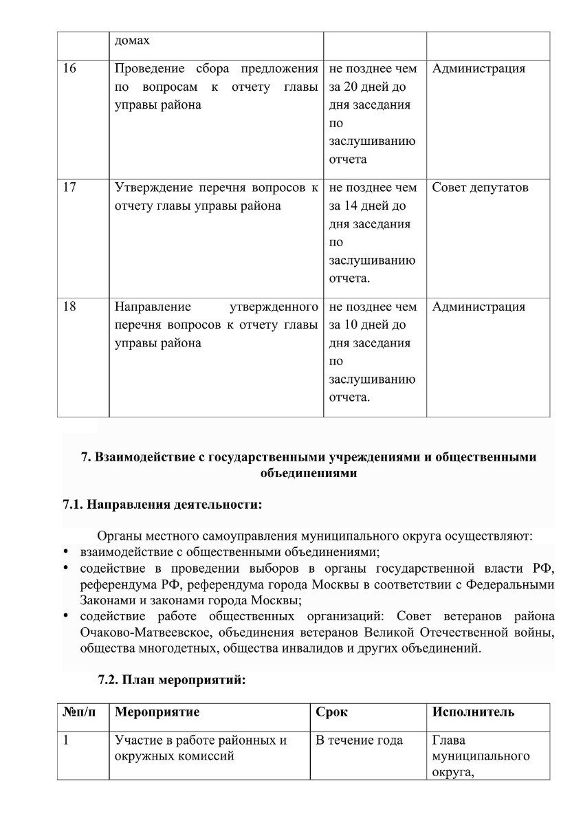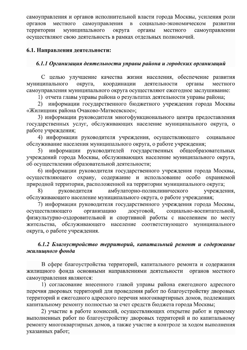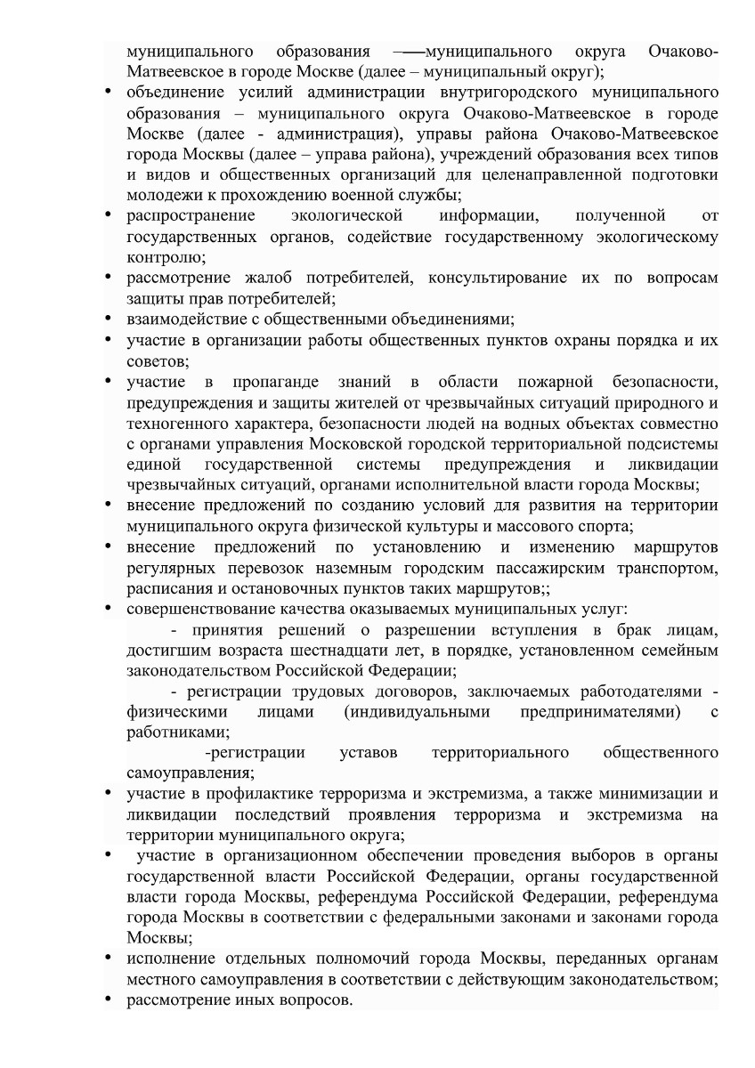 внутригородского муниципального образования – муниципального округа Очаково-Матвеевское в г. Москве