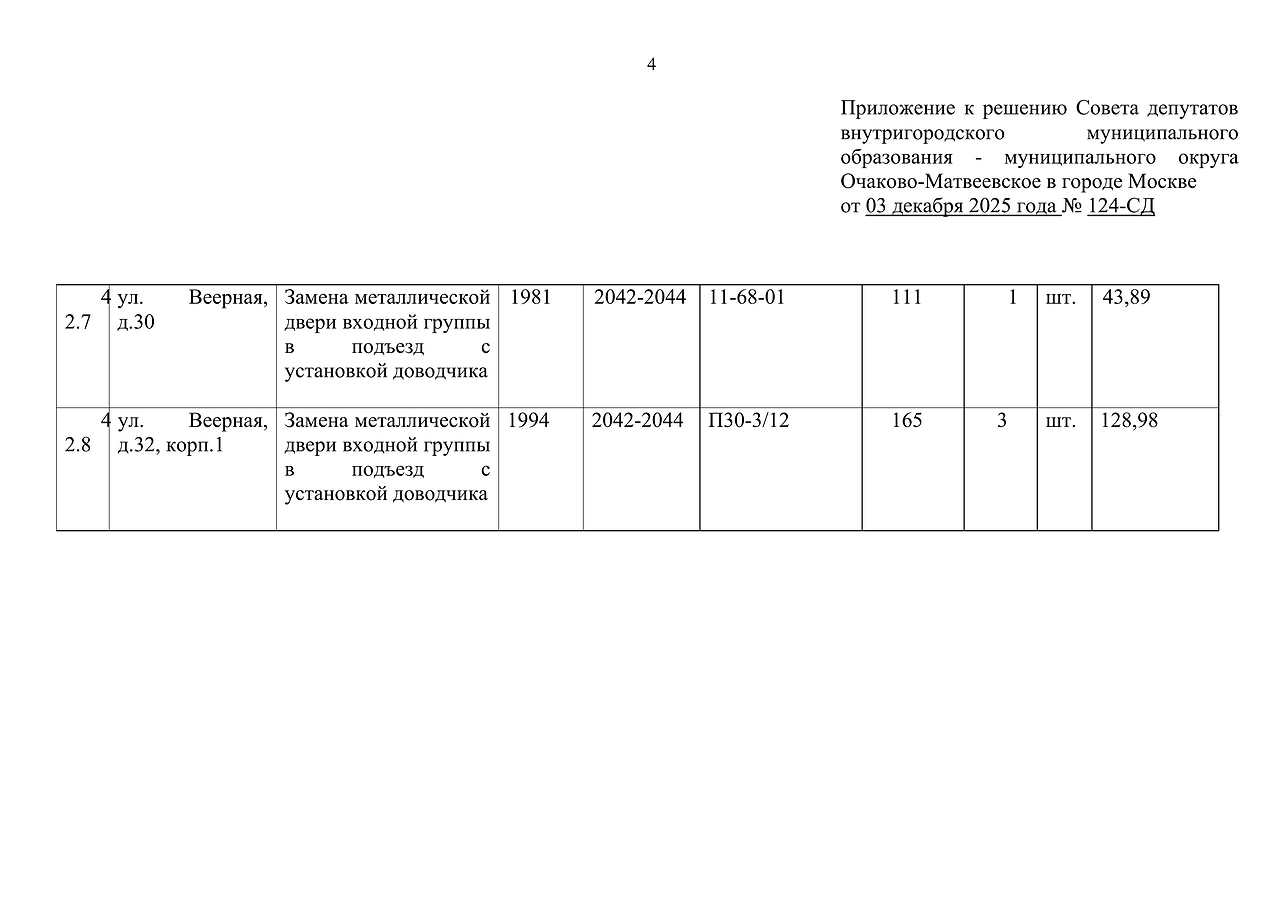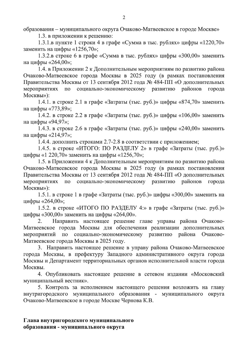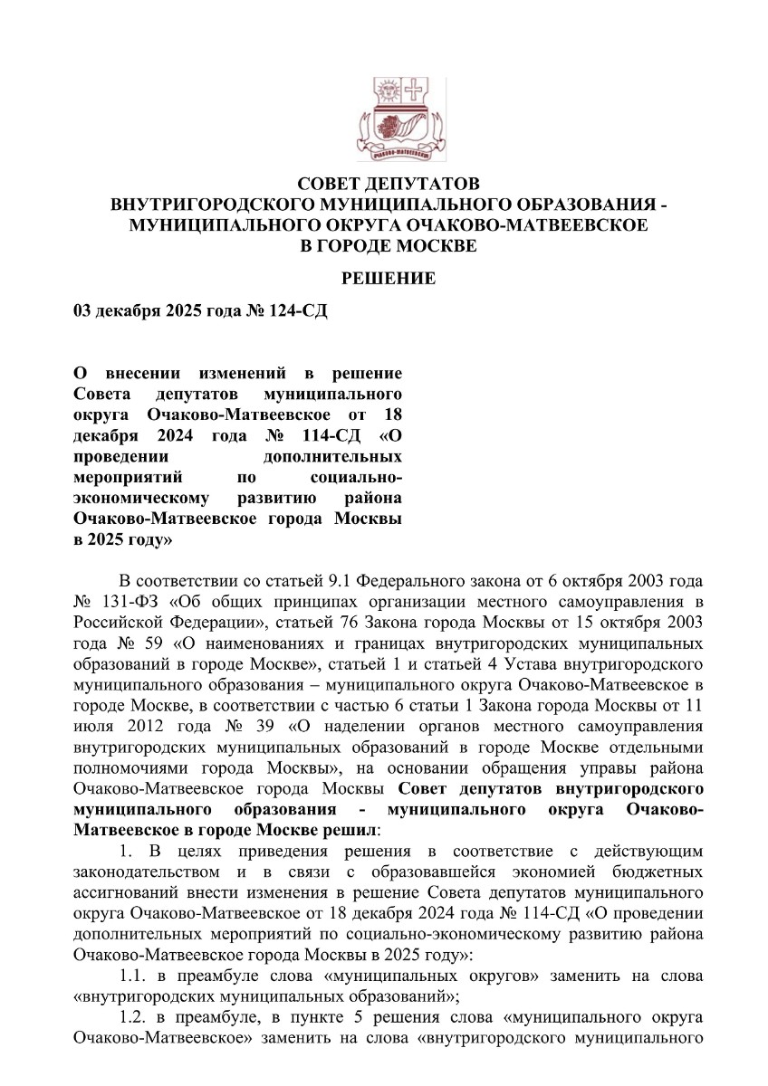 Муниципальный округ Очаково-Матвеевское Решение Совета депутатов от 03.12.2025 № 124-СД