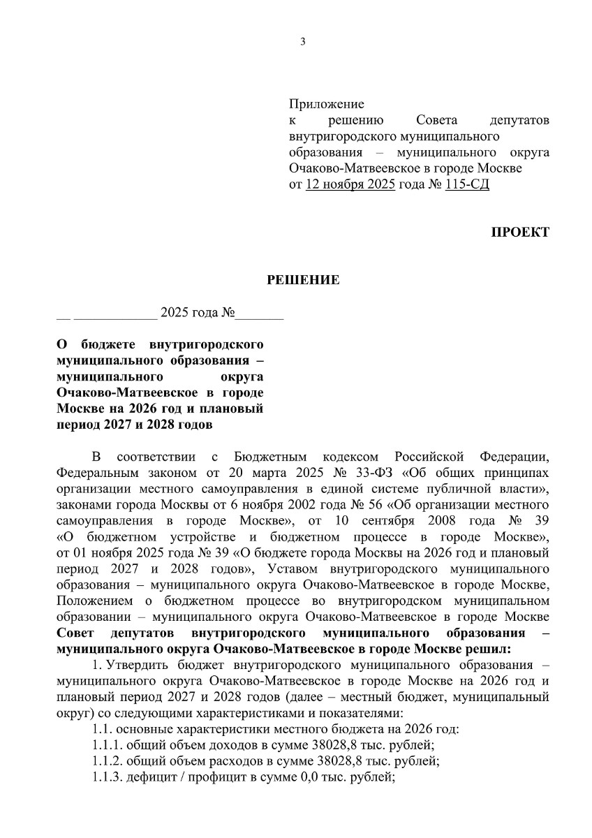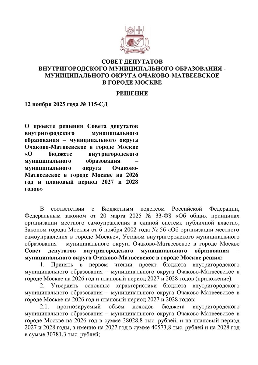 П-Муниципальный округ Очаково-Матвеевское Решение Совета депутатов от 12.11.2025 № 115-СД