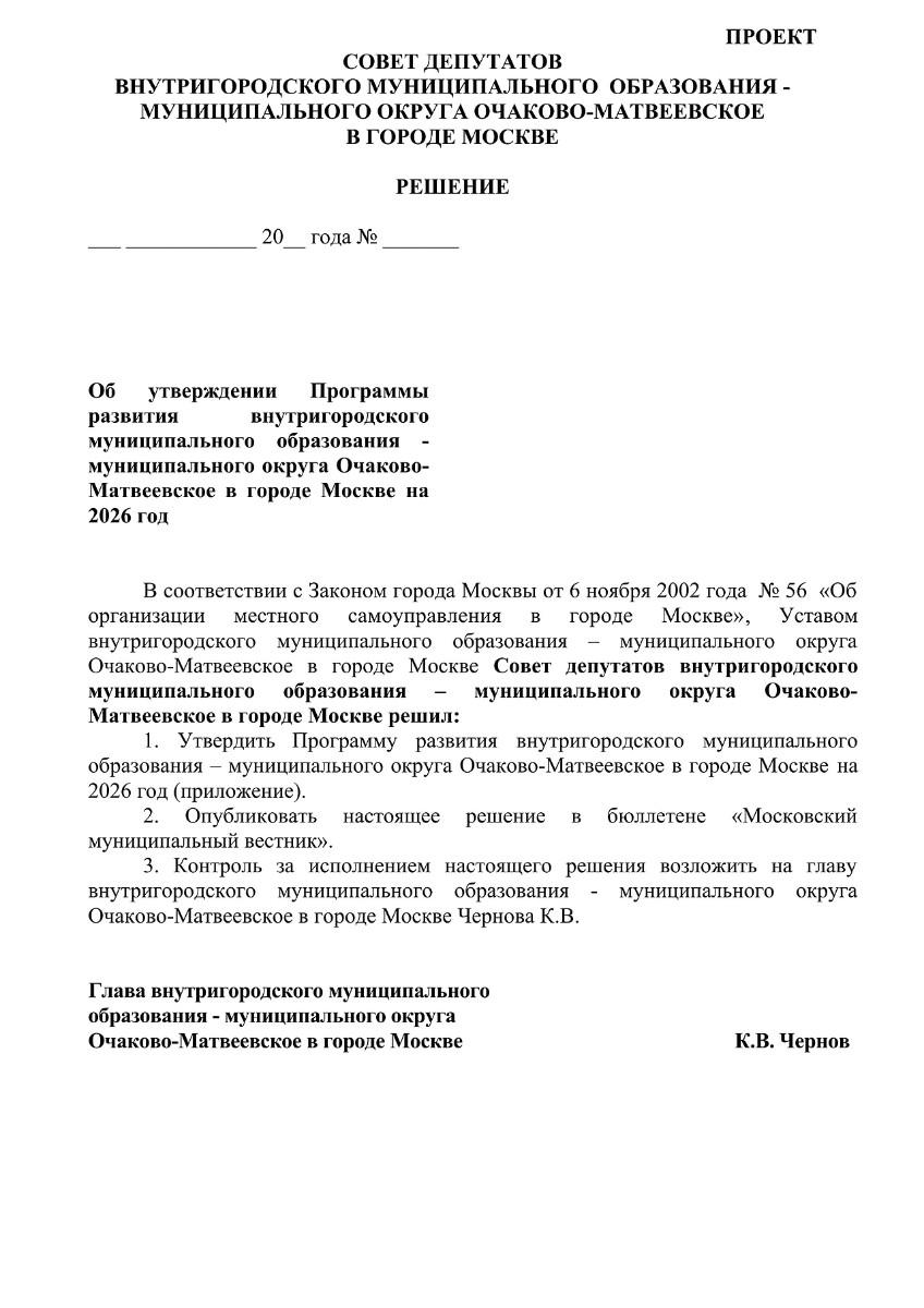 внутригородского муниципального образования – муниципального округа Очаково-Матвеевское в г. Москве