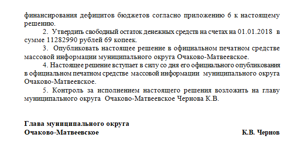 внутригородского муниципального образования – муниципального округа Очаково-Матвеевское в г. Москве