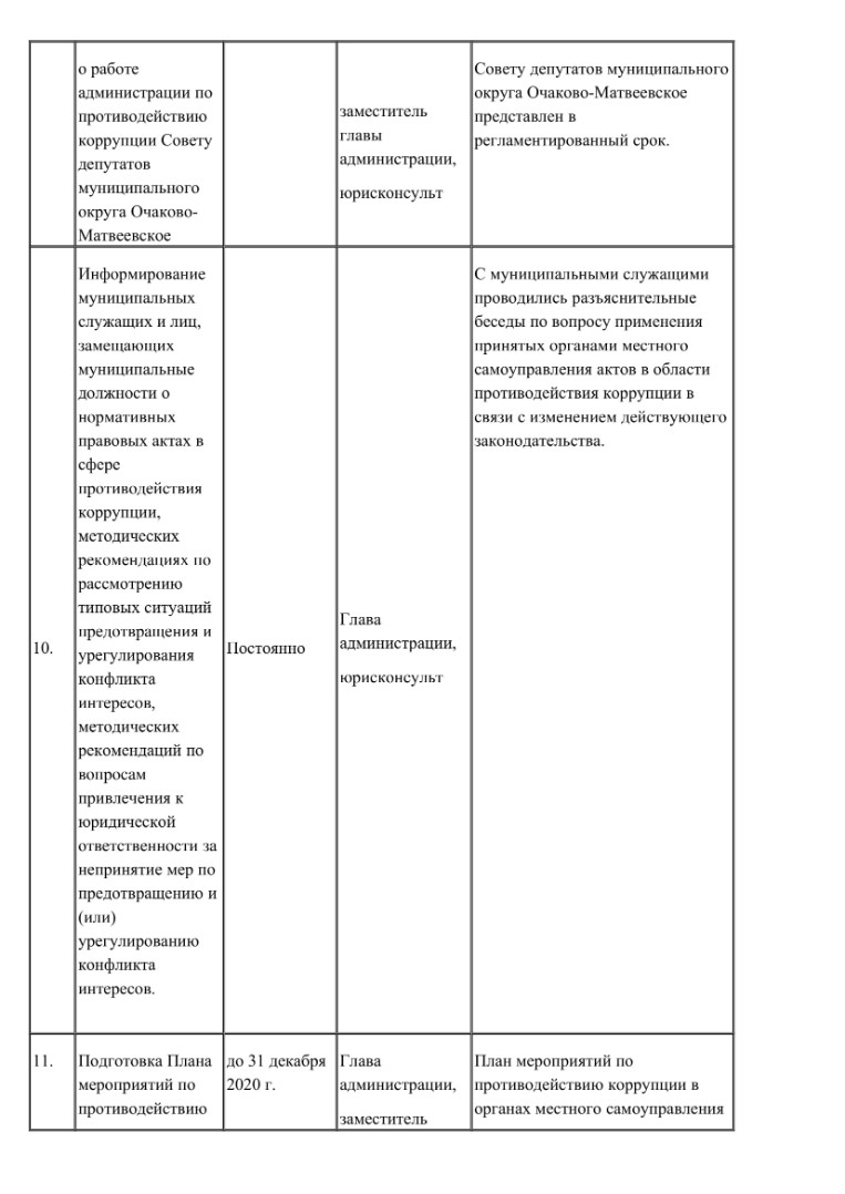 Отчет о работе администрации муниципального округа Очаково-Матвеевское по противодействию коррупции в 2020 году