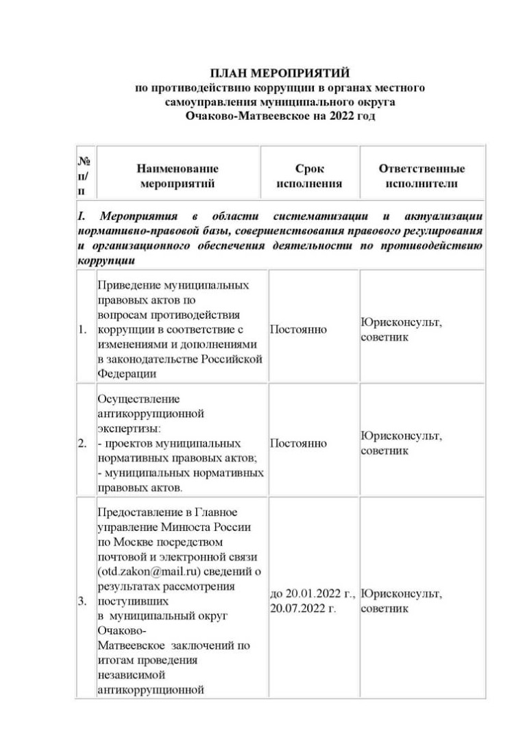 внутригородское муниципальное образование – муниципальный округ очаково-матвеевское в городе москве