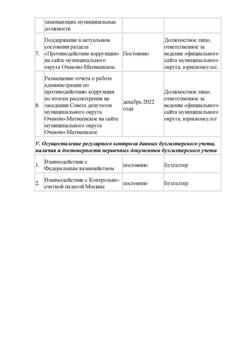 внутригородского муниципального образования – муниципального округа Очаково-Матвеевское в г. Москве