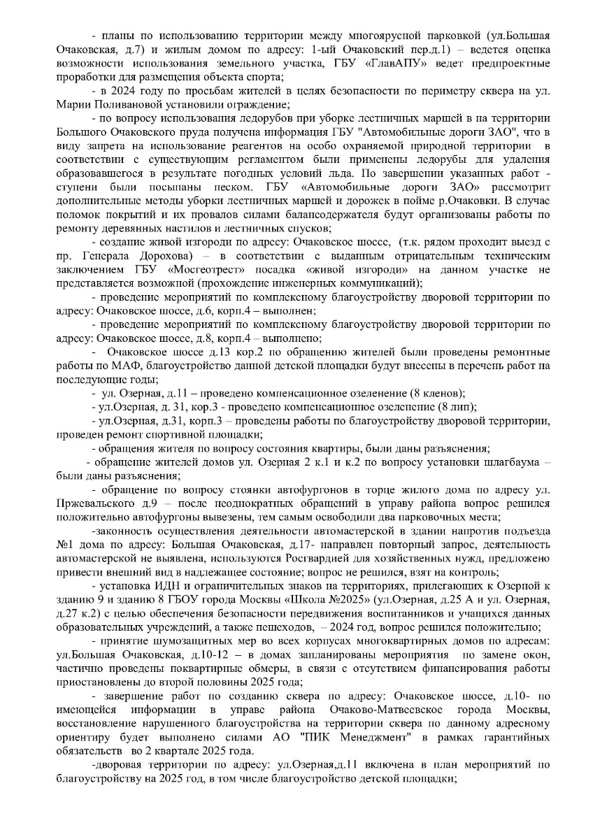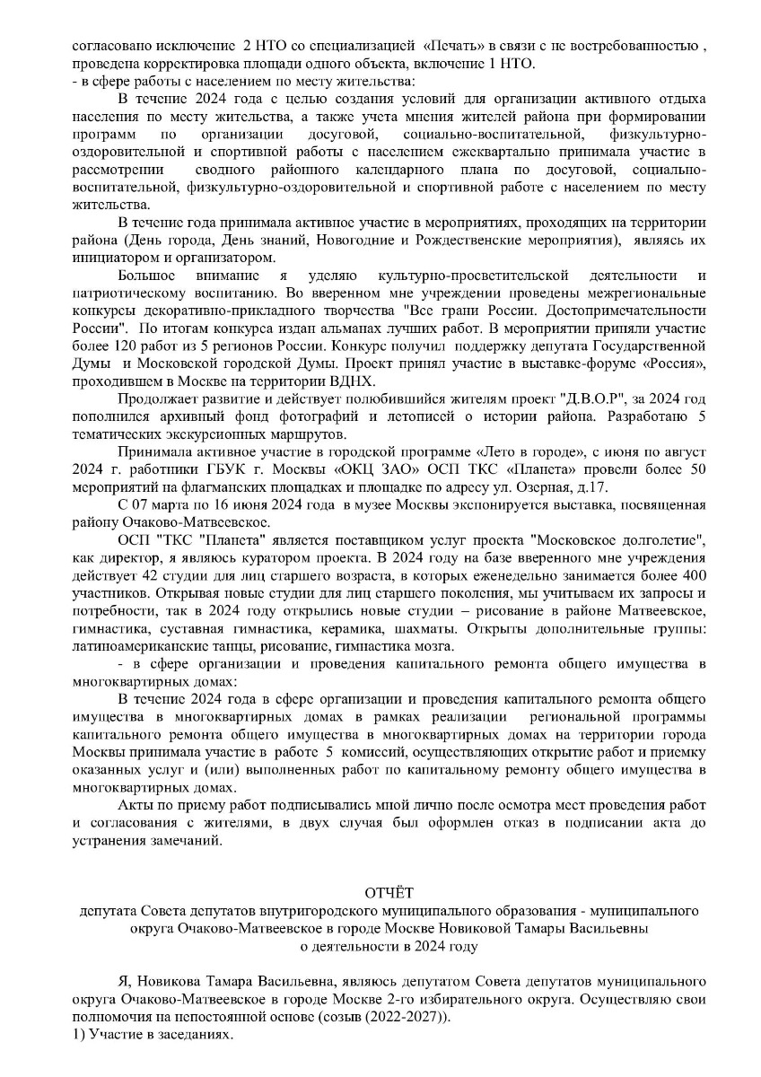 Отчет депутатов Совета депутатов мунципального округа Очаково-Матвеевское за 2024 год (2-ой избирательный округ)