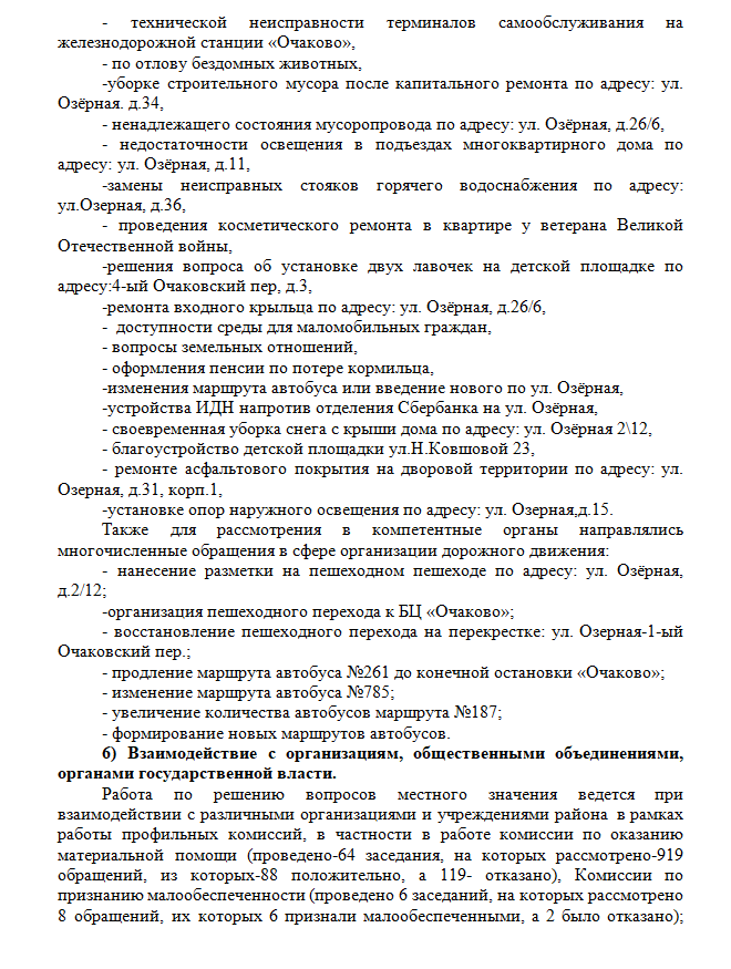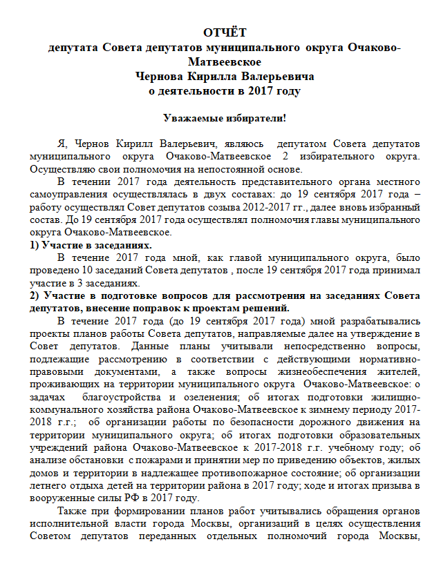 внутригородского муниципального образования – муниципального округа Очаково-Матвеевское в г. Москве
