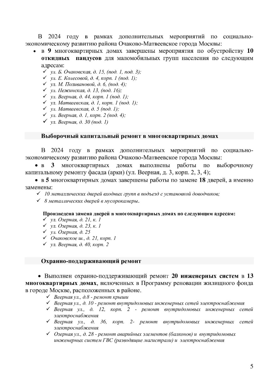 внутригородского муниципального образования – муниципального округа Очаково-Матвеевское в г. Москве