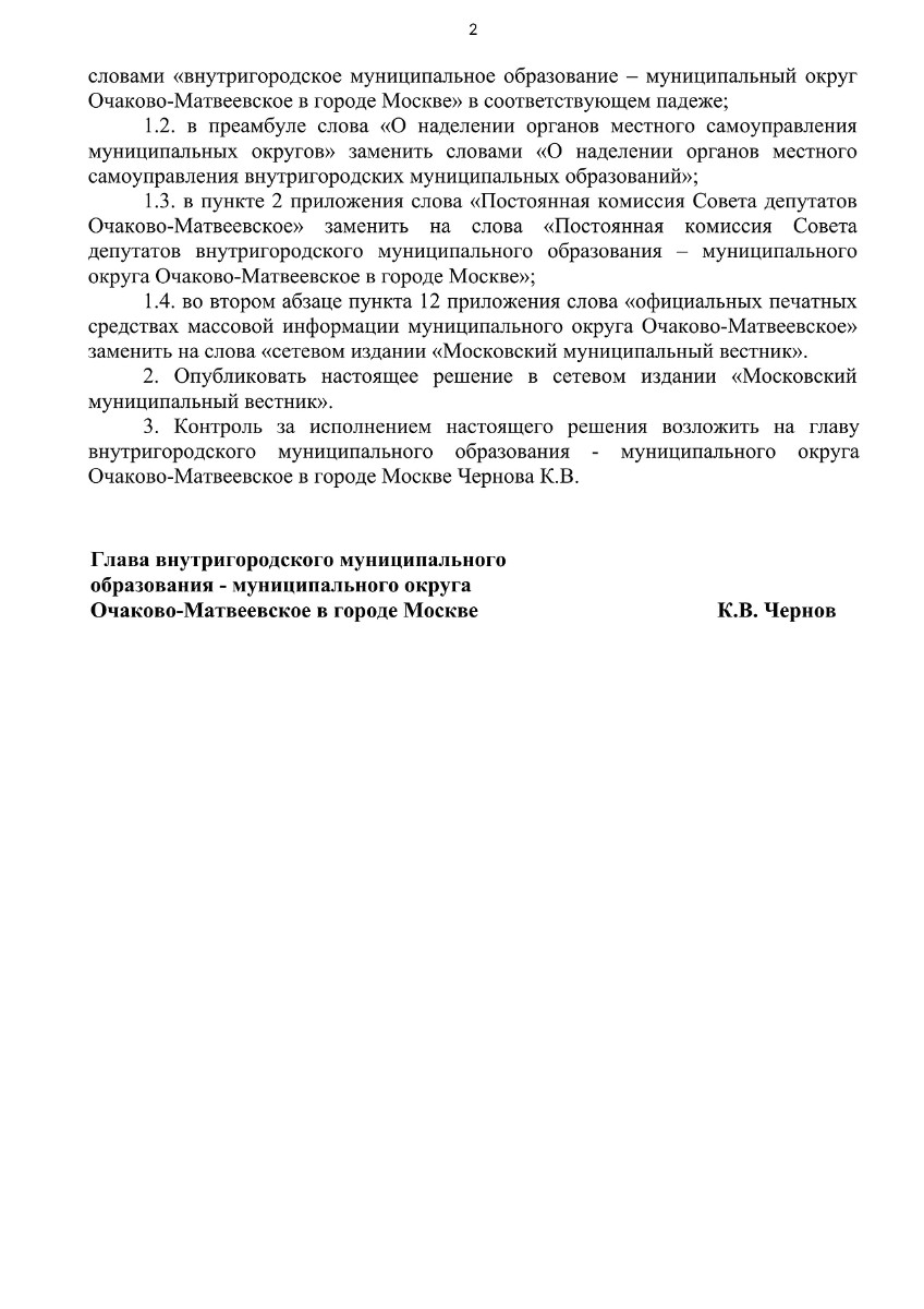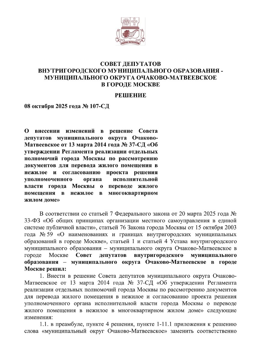 П-Муниципальный округ Очаково-Матвеевское Решение Совета депутатов от 08.10.2025 № 107-СД
