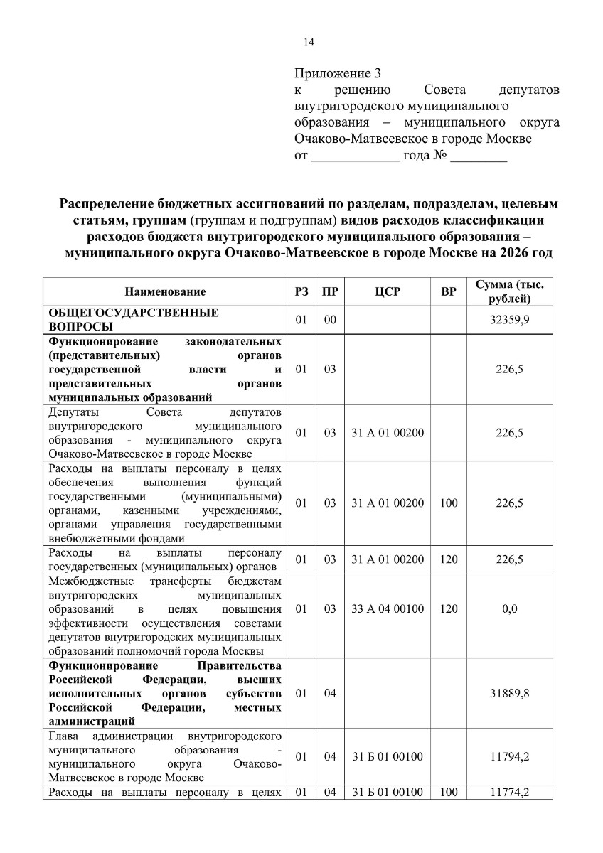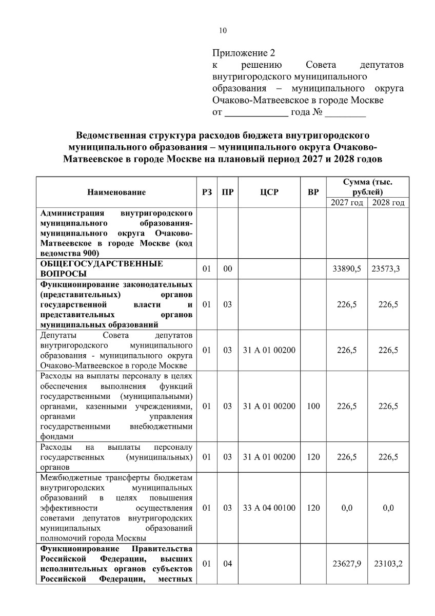 внутригородского муниципального образования – муниципального округа Очаково-Матвеевское в г. Москве