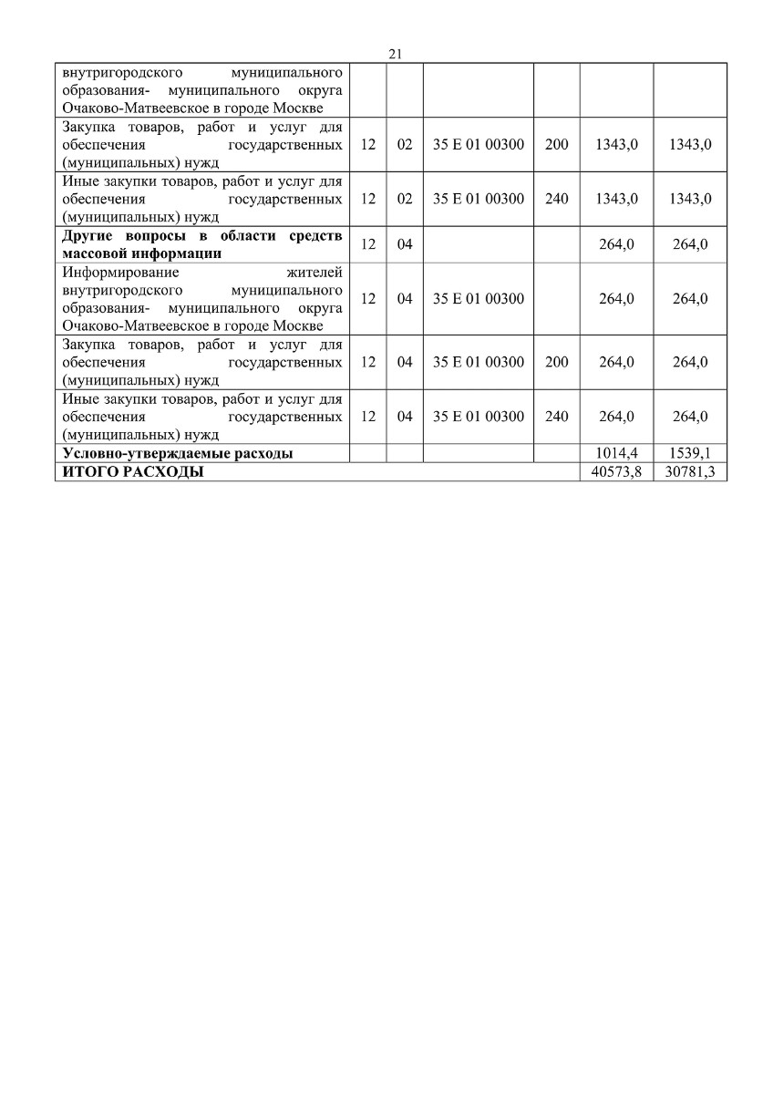 внутригородское муниципальное образование – муниципальный округ очаково-матвеевское в городе москве