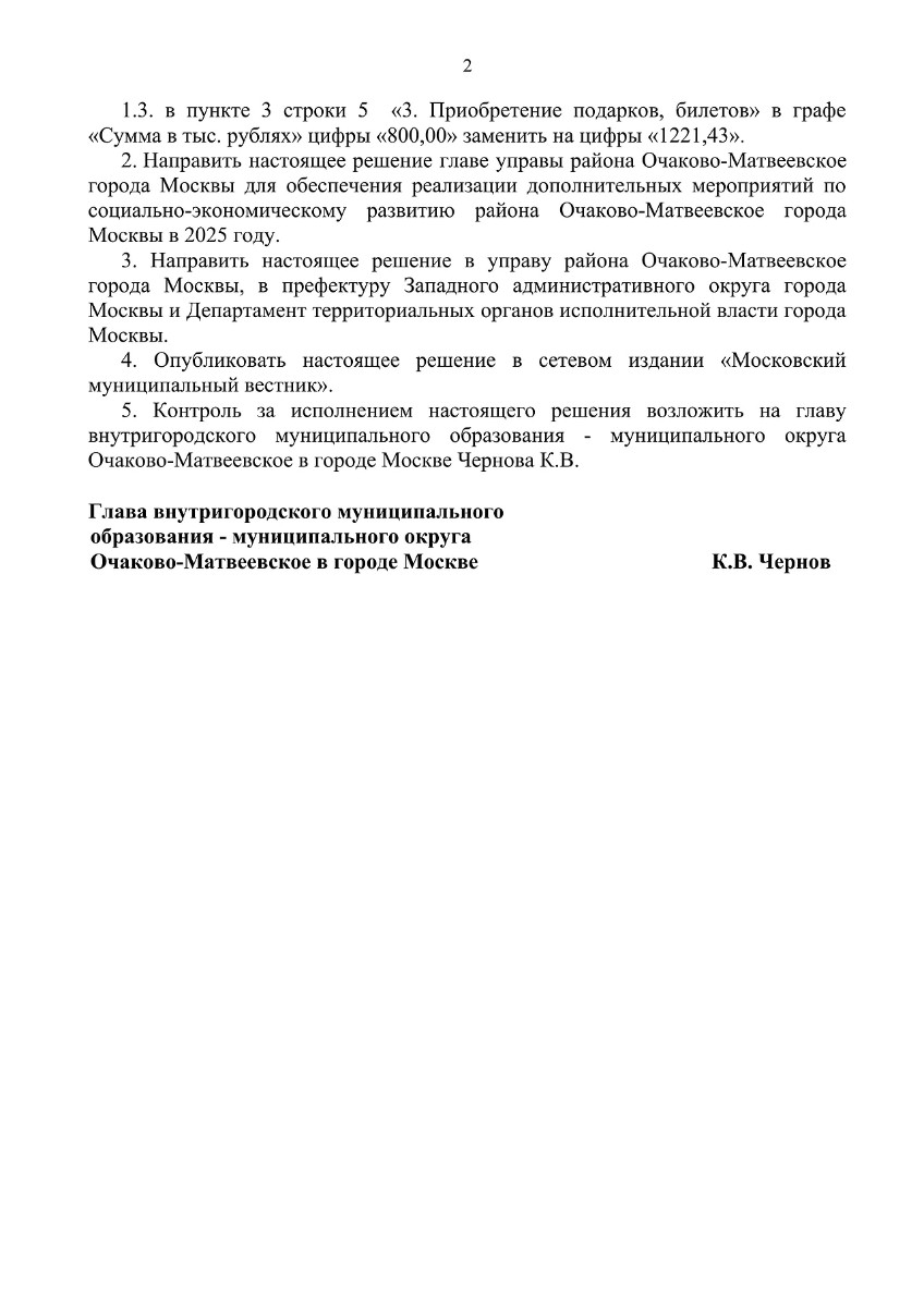 П-Муниципальный округ Очаково-Матвеевское Решение Совета депутатов от 12.11.2025 № 116-СД